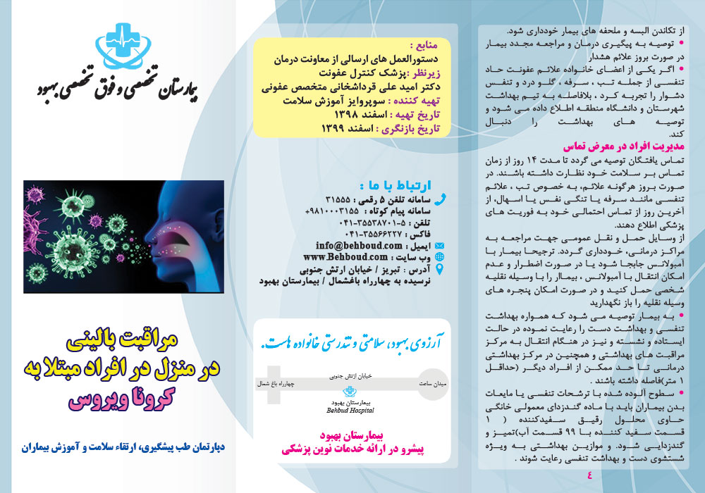 مراقبت بالینی در منزل در افراد مبتلا به کرونا ویروس